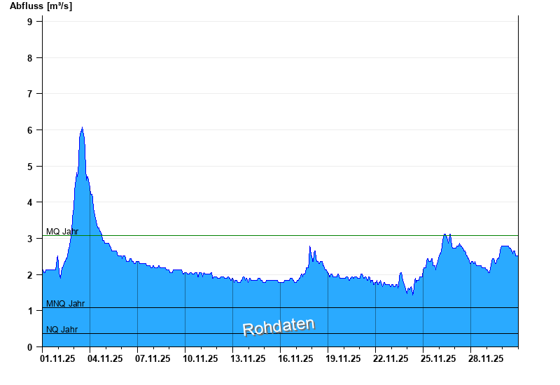 - Mittlerer Niedrigwasserabfluss MNQ 1,08 m³/s