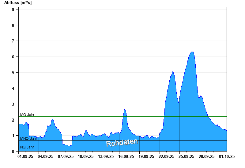 - Mittlerer Niedrigwasserabfluss MNQ 0,696 m³/s
