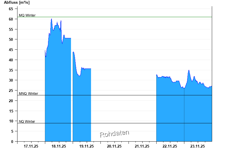 - Mittlerer Niedrigwasserabfluss MNQ 22,7 m³/s