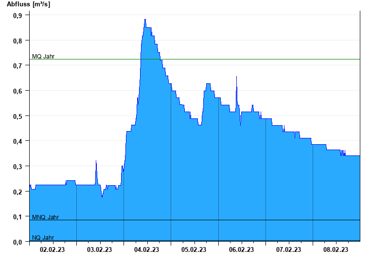 - Mittlerer Niedrigwasserabfluss MNQ 0,085 m³/s