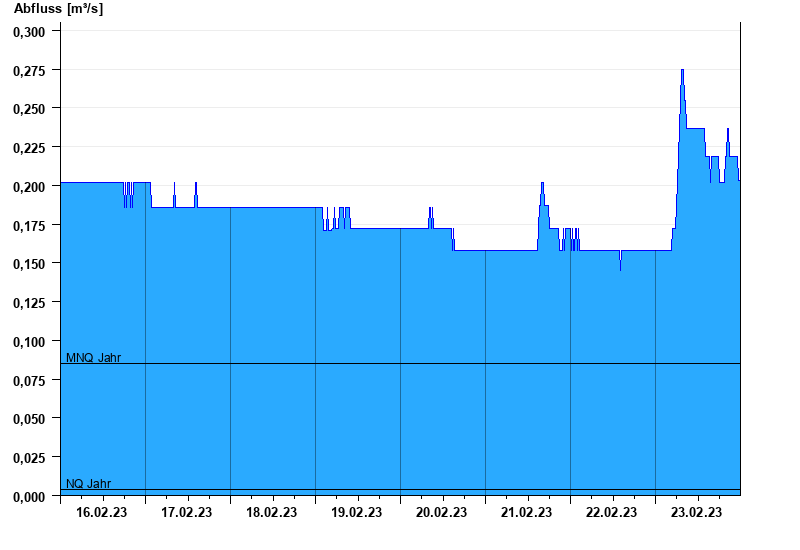 - Mittlerer Niedrigwasserabfluss MNQ 0,085 m³/s