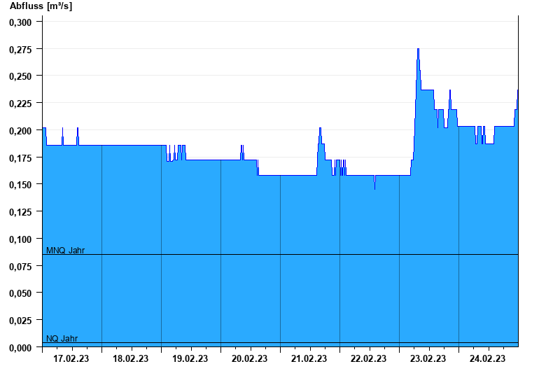 - Mittlerer Niedrigwasserabfluss MNQ 0,085 m³/s