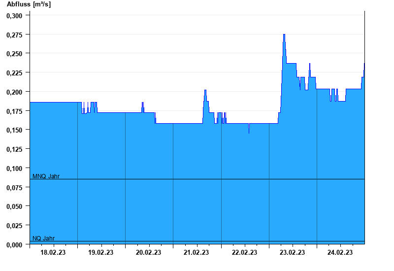 - Mittlerer Niedrigwasserabfluss MNQ 0,085 m³/s