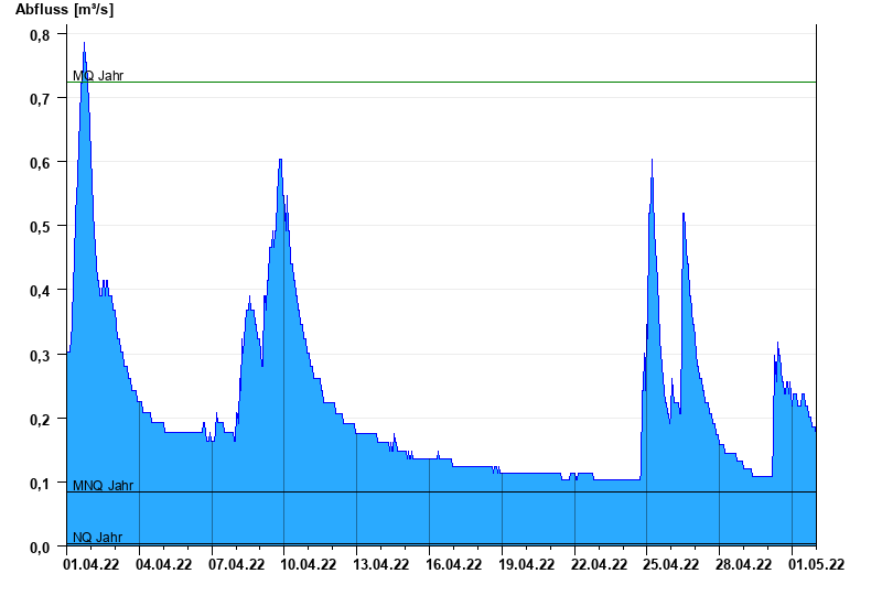 - Mittlerer Niedrigwasserabfluss MNQ 0,085 m³/s