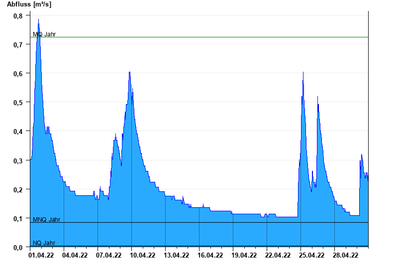 - Mittlerer Niedrigwasserabfluss MNQ 0,085 m³/s