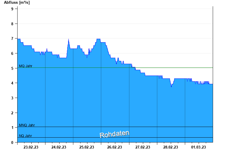 - Mittlerer Niedrigwasserabfluss MNQ 1,04 m³/s