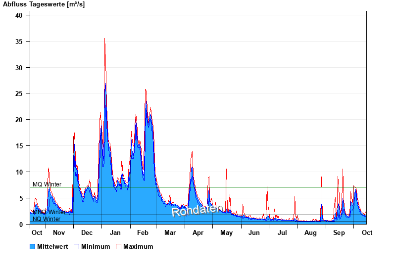 - Mittlerer Niedrigwasserabfluss MNQ 1,8 m³/s