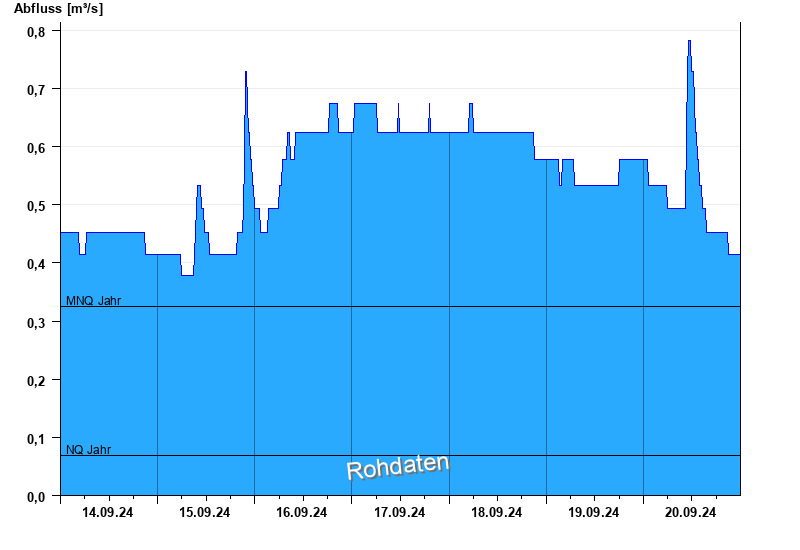 - Mittlerer Niedrigwasserabfluss MNQ 0,325 m³/s