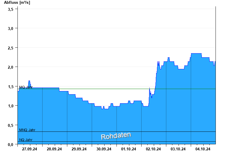 - Mittlerer Niedrigwasserabfluss MNQ 0,325 m³/s