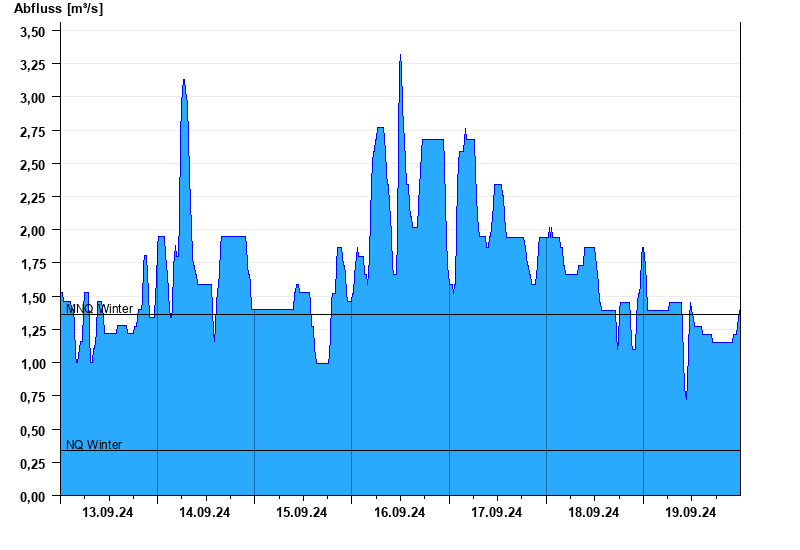 - Mittlerer Niedrigwasserabfluss MNQ 1,36 m³/s