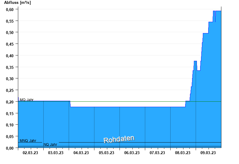 - Mittlerer Niedrigwasserabfluss MNQ 0,023 m³/s