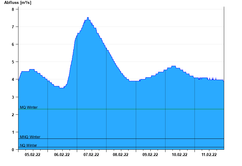 - Mittlerer Niedrigwasserabfluss MNQ 0,611 m³/s