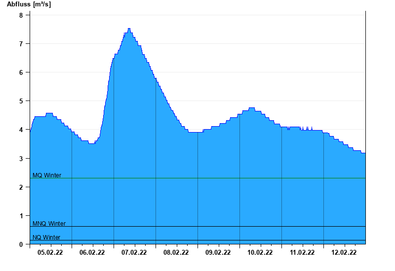 - Mittlerer Niedrigwasserabfluss MNQ 0,611 m³/s