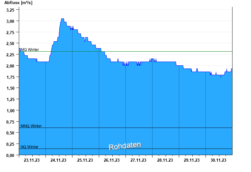 - Mittlerer Niedrigwasserabfluss MNQ 0,611 m³/s