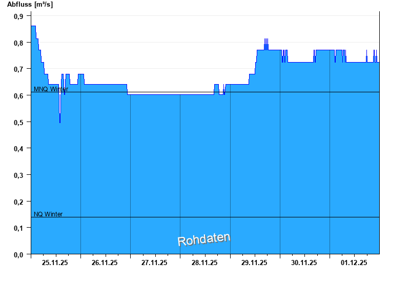 - Mittlerer Niedrigwasserabfluss MNQ 0,611 m³/s