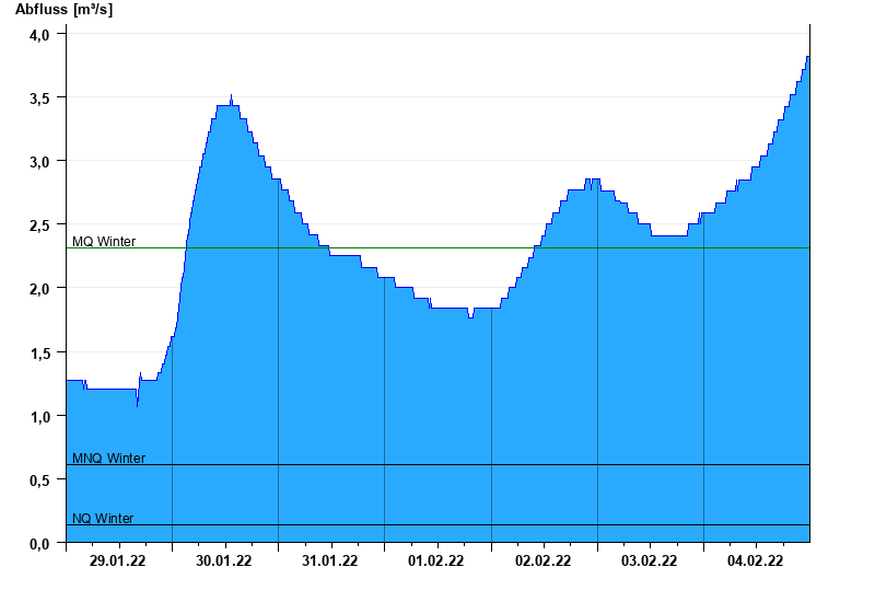 - Mittlerer Niedrigwasserabfluss MNQ 0,611 m³/s