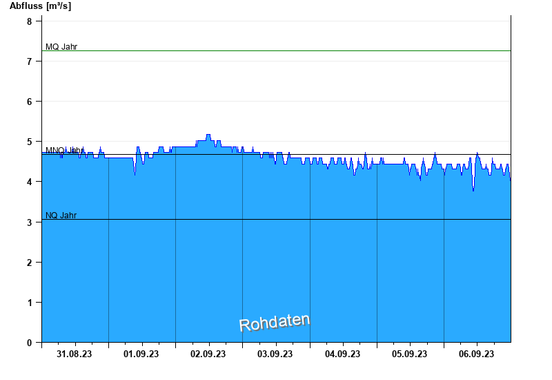 - Mittlerer Niedrigwasserabfluss MNQ 4,68 m³/s