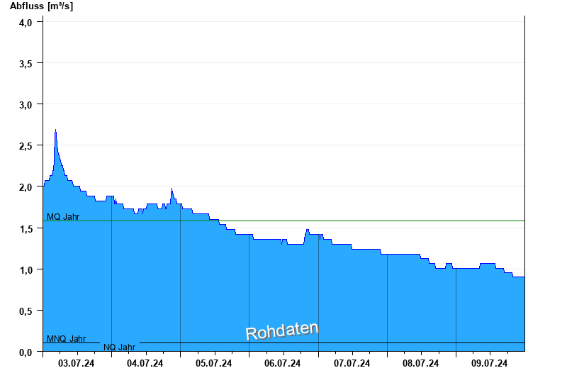 - Mittlerer Niedrigwasserabfluss MNQ 0,104 m³/s