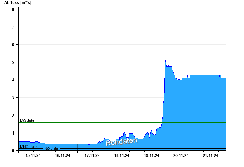 - Mittlerer Niedrigwasserabfluss MNQ 0,104 m³/s