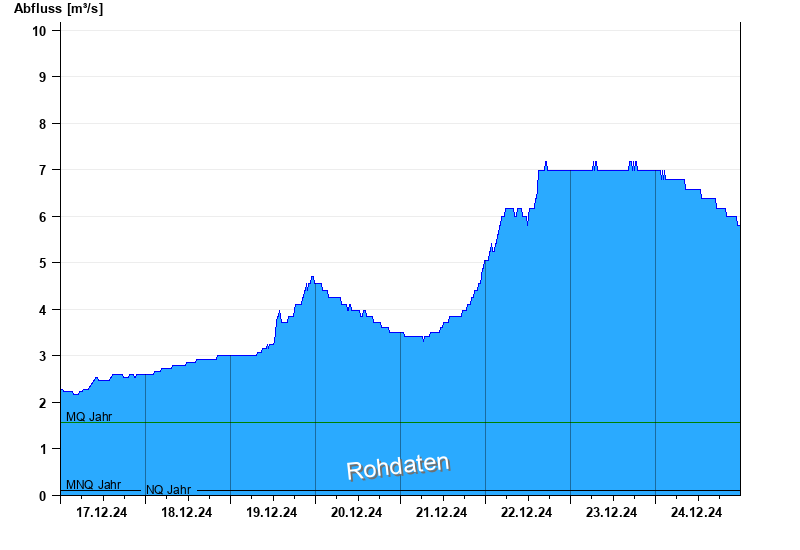 - Mittlerer Niedrigwasserabfluss MNQ 0,104 m³/s