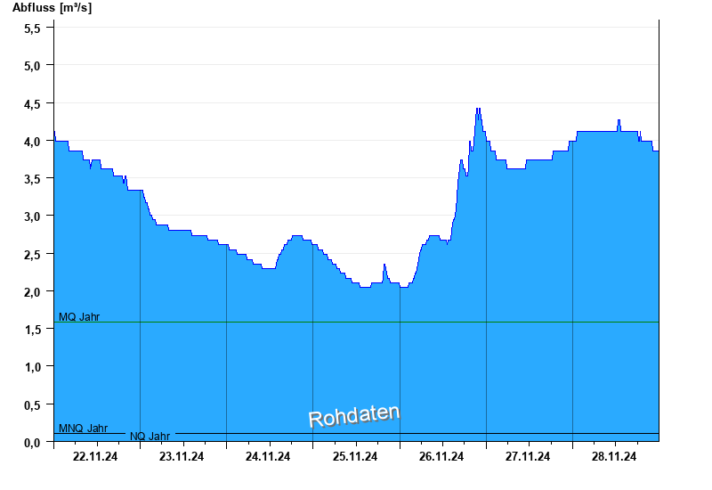 - Mittlerer Niedrigwasserabfluss MNQ 0,104 m³/s