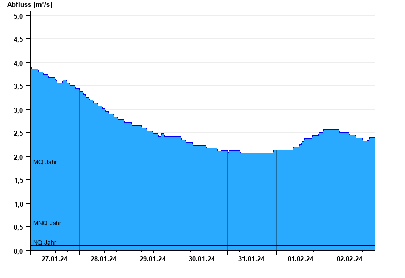 • Mittlerer Niedrigwasserabfluss MNQ 0,518 m³/s