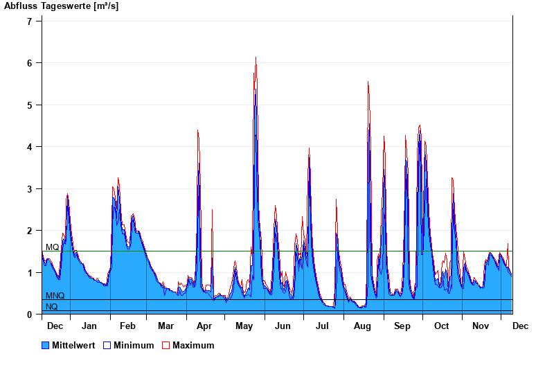 - Mittlerer Niedrigwasserabfluss MNQ 0,349 m³/s