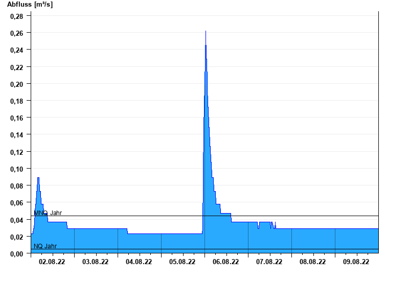 - Mittlerer Niedrigwasserabfluss MNQ 0,044 m³/s
