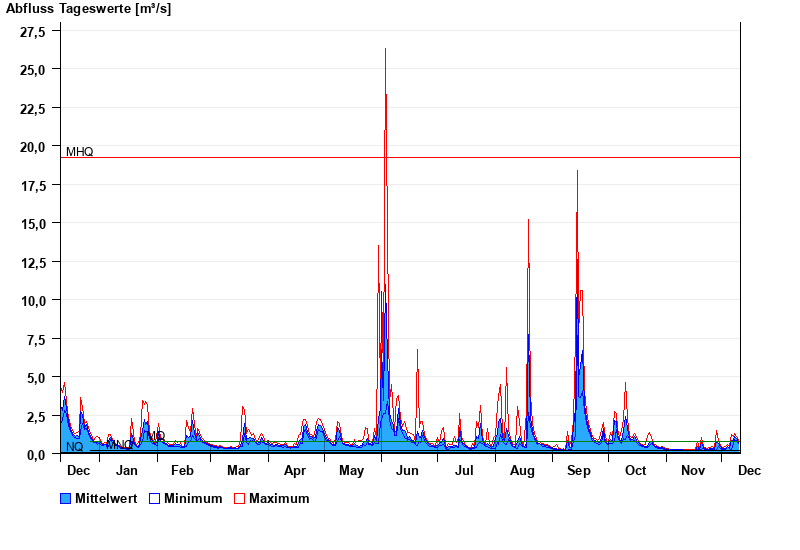 - Mittlerer Hochwasserabfluss MHQ 19,2 m³/s
