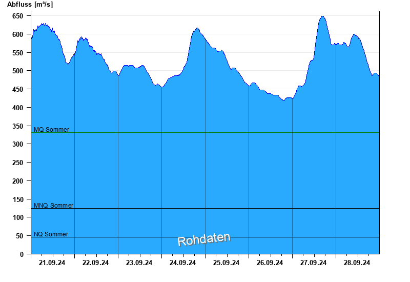 - Mittlerer Niedrigwasserabfluss MNQ 124 m³/s