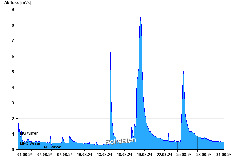 - Mittlerer Niedrigwasserabfluss MNQ 0,27 m³/s