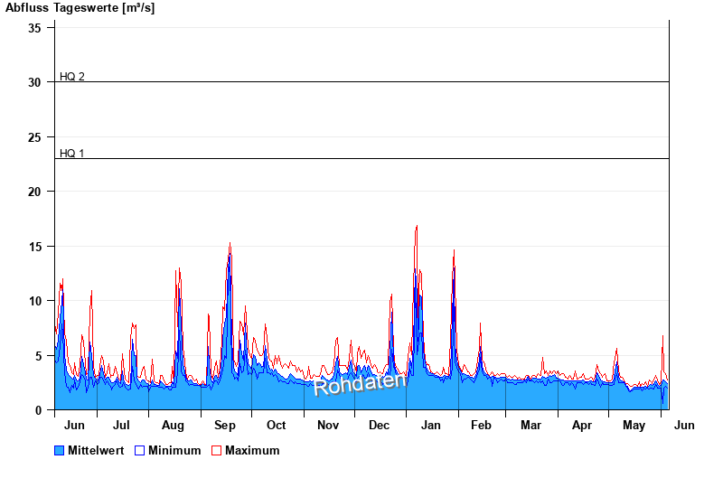 | Date | Mean value [m³/s] | Maximum [m³/s] | Minimum [m³/s] |