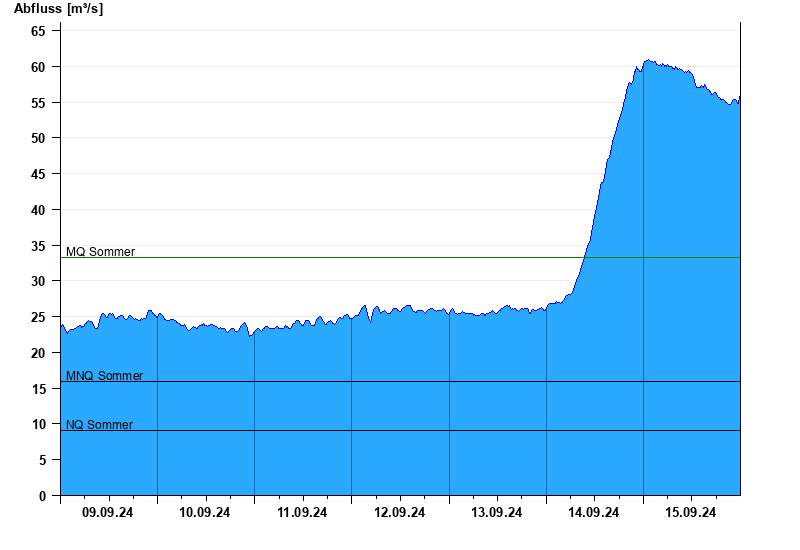 - Mittlerer Niedrigwasserabfluss MNQ 15,9 m³/s