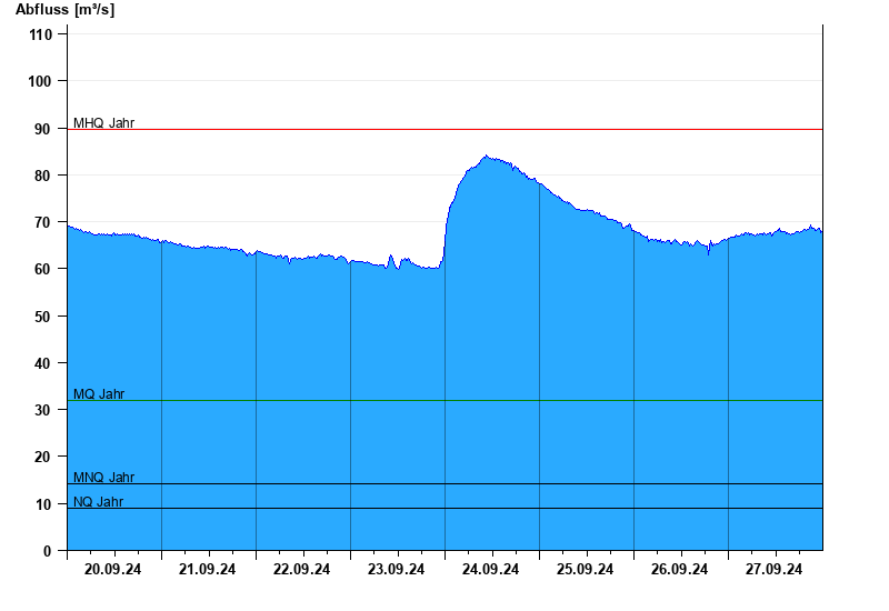 - Mittlerer Niedrigwasserabfluss MNQ 14,3 m³/s