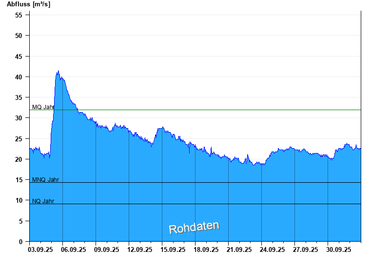 - Mittlerer Niedrigwasserabfluss MNQ 14,3 m³/s