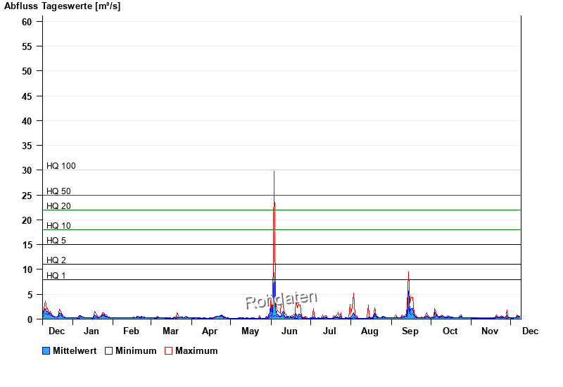 | Date | Mean value [m³/s] | Maximum [m³/s] | Minimum [m³/s] |