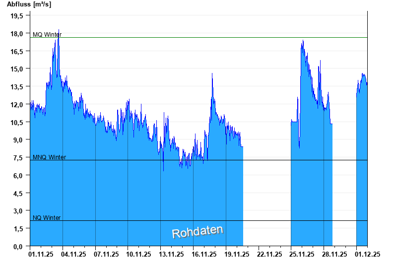 - Mittlerer Niedrigwasserabfluss MNQ 7,26 m³/s