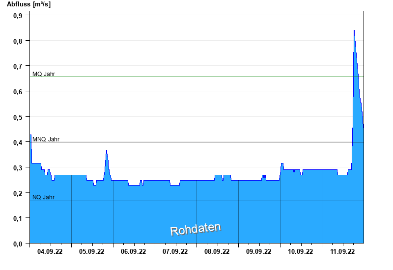 - Mittlerer Niedrigwasserabfluss MNQ 0,399 m³/s