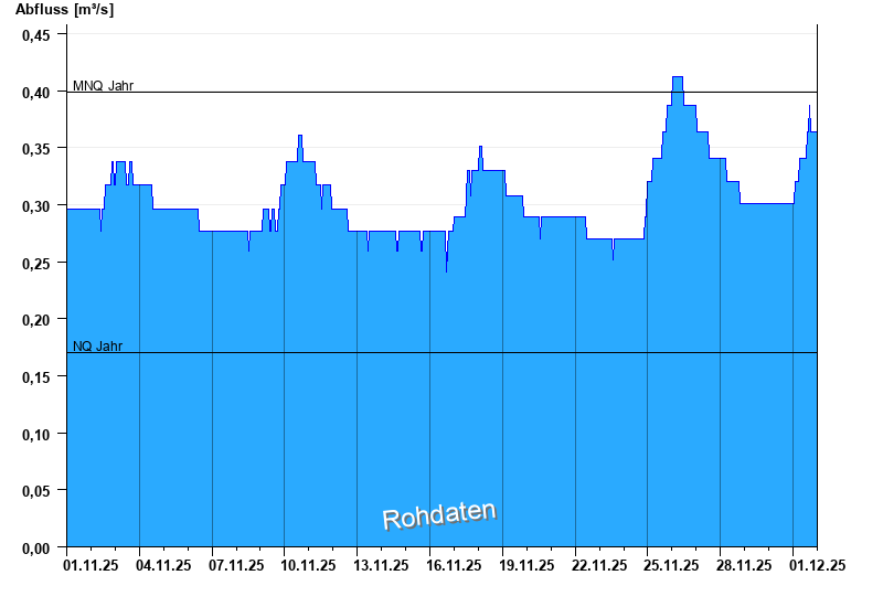 - Mittlerer Niedrigwasserabfluss MNQ 0,399 m³/s