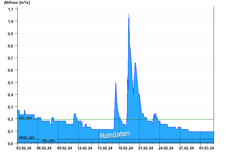 - Mittlerer Niedrigwasserabfluss MNQ 0,032 m³/s