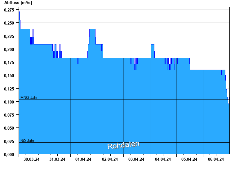 - Mittlerer Niedrigwasserabfluss MNQ 0,104 m³/s