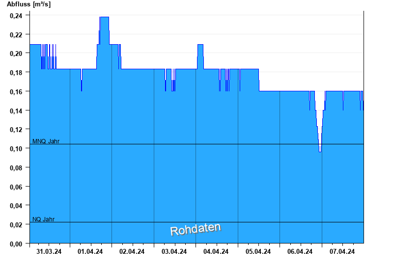 - Mittlerer Niedrigwasserabfluss MNQ 0,104 m³/s