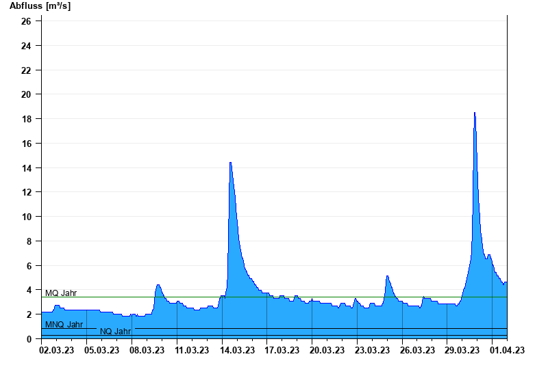 - Mittlerer Hochwasserabfluss MHQ 54,1 m³/s