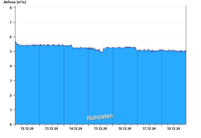 Der Pegel wird durch Baumaßnahmen unterhalb beeinflusst (Rückstau). Entsprechend sind die Abflusswerte nicht korrekt