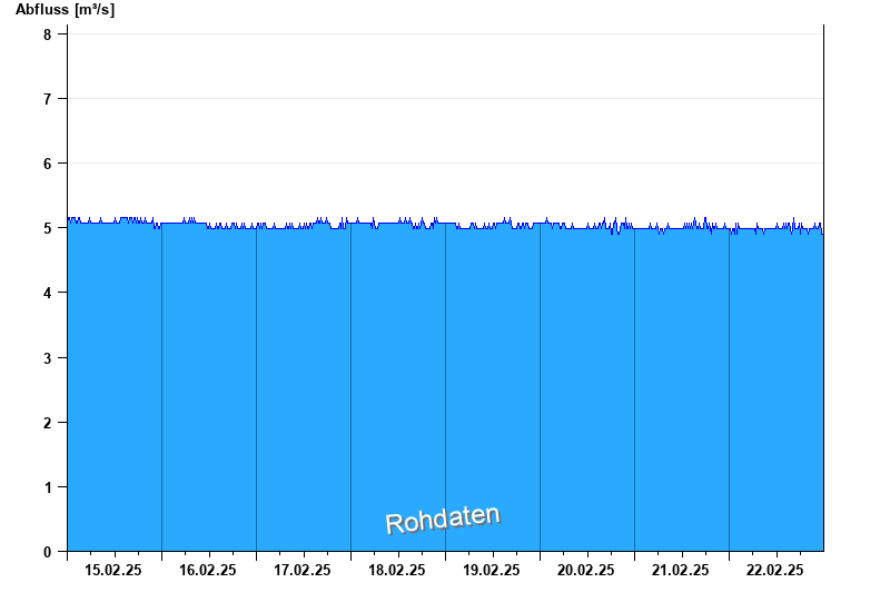 Der Pegel wird durch Baumaßnahmen unterhalb beeinflusst (Rückstau). Entsprechend sind die Abflusswerte nicht korrekt