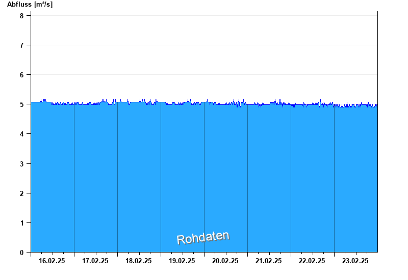 Der Pegel wird durch Baumaßnahmen unterhalb beeinflusst (Rückstau). Entsprechend sind die Abflusswerte nicht korrekt