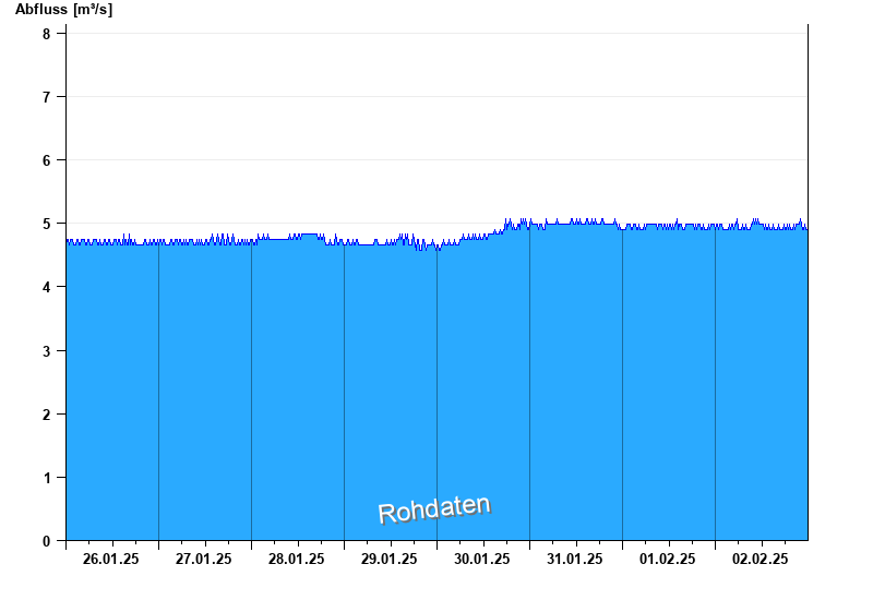 Der Pegel wird durch Baumaßnahmen unterhalb beeinflusst (Rückstau). Entsprechend sind die Abflusswerte nicht korrekt