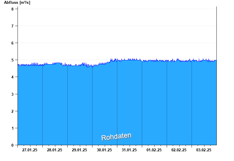 Der Pegel wird durch Baumaßnahmen unterhalb beeinflusst (Rückstau). Entsprechend sind die Abflusswerte nicht korrekt
