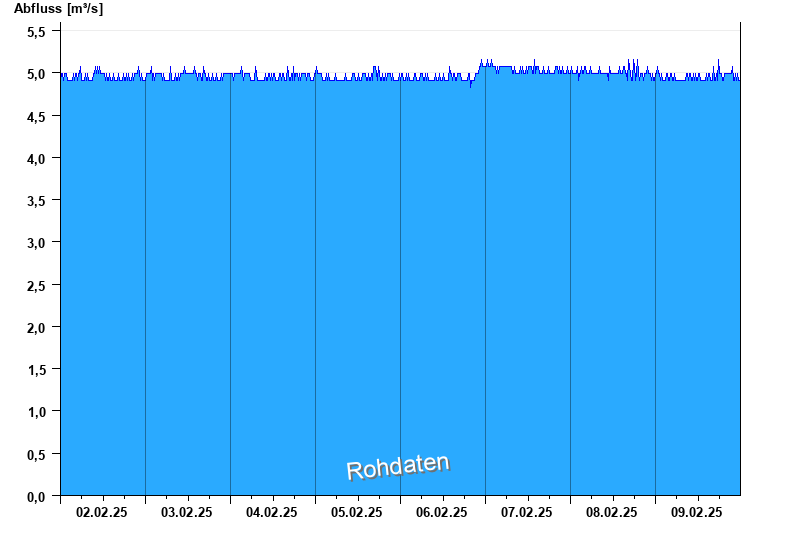 Der Pegel wird durch Baumaßnahmen unterhalb beeinflusst (Rückstau). Entsprechend sind die Abflusswerte nicht korrekt