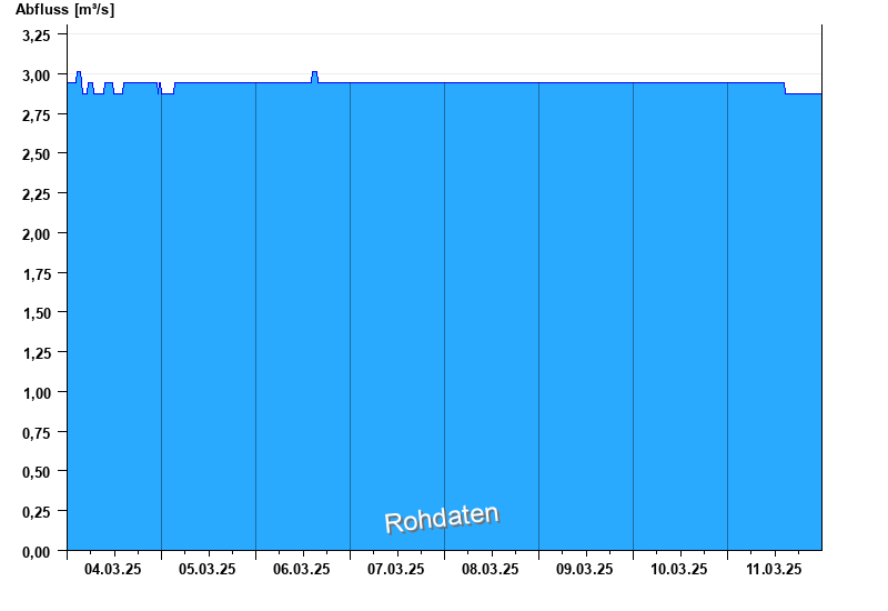 Der Pegel wird durch Baumaßnahmen unterhalb beeinflusst (Rückstau). Entsprechend sind die Abflusswerte nicht korrekt